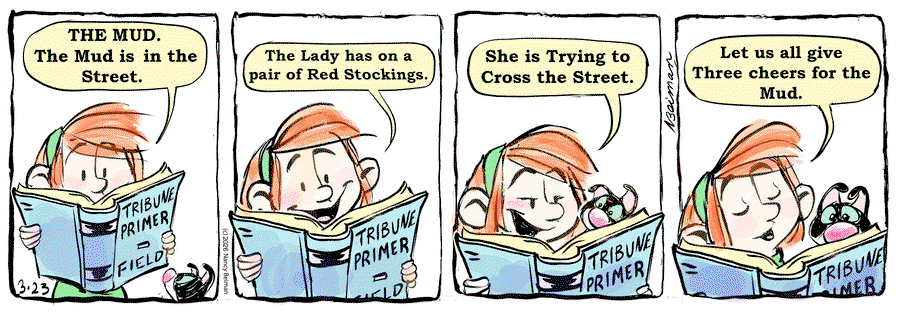 I open the Mud Fair story arc with a quote from Eugene Field’s book, THE TRIBUNE PRIMER. Field wrote sardonic parodies of a children’s primer for the Denver Tribune. (The New England Primer was the 19th century version of Dick and Jane, oh my, that needs footnotes too for anyone born after 1970) My 1901 copy is illustrated by Frederick Opper.