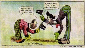By a remarkable coincidence, Opper’s comic strip ALPHONSE AND GASTON featured two ridiculously polite Frenchmen who never got anything done since they always insisted that the other gentleman precede them.
