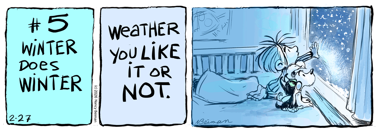 Here is the correct strip for February 27. I am proud of the artwork and the caption and distinctly displeased with Opal.